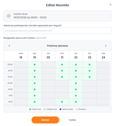 Sim, caso precise de reagendar um compromisso ou adicionar alguém à conversa, pode fazê-lo diretamente pela plataforma.