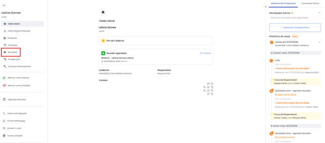 4° passo: Na Página do Lead, clique na seção de "Reuniões".