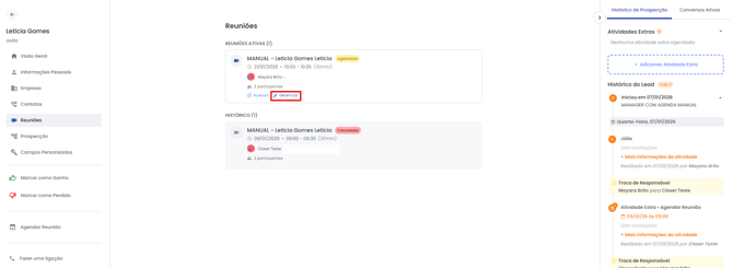 Para editar uma reunião através da página de um lead específico, siga os passos abaixo: