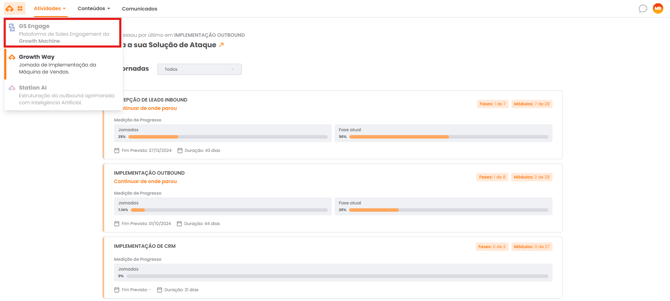 1° passo: Acesse o GS Engage através da Navbar, clicando na opção “GS Engage” .