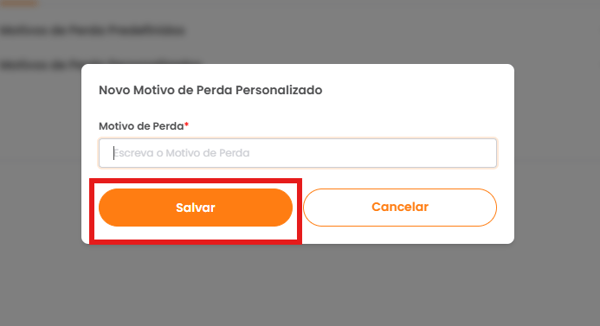 5° passo: Clique em "Salvar" para criar o motivo de perda personalizado.