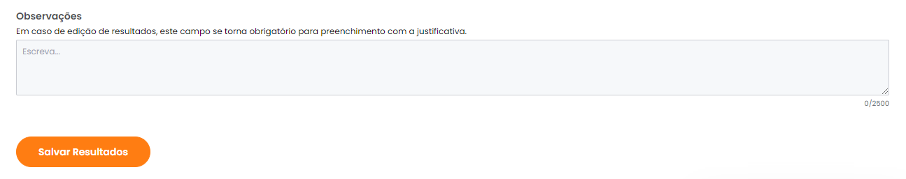 8° passo: Por fim, clique em “Salvar Resultados” para salvar todas as informações adicionadas durante a declaração dos resultados obtidos.