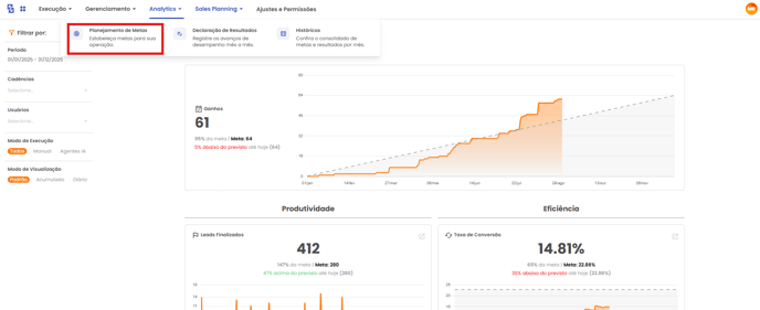 2° passo: Acesse a página de Planejamento de Metas através de Sales Planning > Planejamento de Metas.