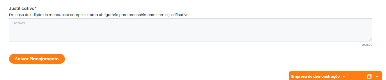 6° passo: Após realizar as edições desejadas no planejamento de metas é necessário adicionar uma justificativa para salvar as edições realizadas.