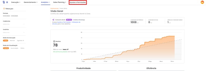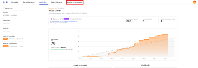 2° passo: Clique em “Ajustes e Permissões” para acessar a página de Configurações do GS Engage.