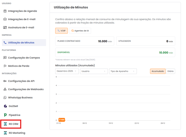 Para configurar as cadências integradas com RD Station CRM, siga os passos abaixo:
