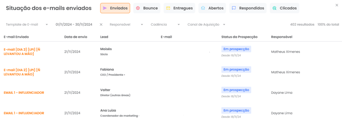 As métricas associadas aos e-mails que podem ser visualizadas na página de dashboard de E-mails são as seguintes: